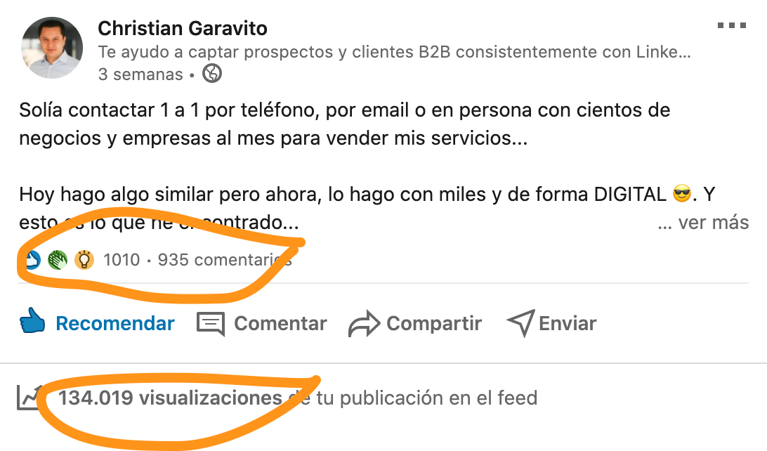 Obtendrás una copia electrónica de Obtén Clientes B2B disponible al instante. También tendrás acceso a un curso de implementación de marketing B2B. Obtendrás la guía definitiva para crear un perfil en LinkedIn optimizado para vender. Obtendrás la calculadora de prospección orgánica. Obtendrás acceso a una comunidad privada de fundadores y empresarios que han adquirido el libro. Y obtendrás  la plantilla de la publicación con más de 300 mil visualizaciones y 12 mil interacciones.
